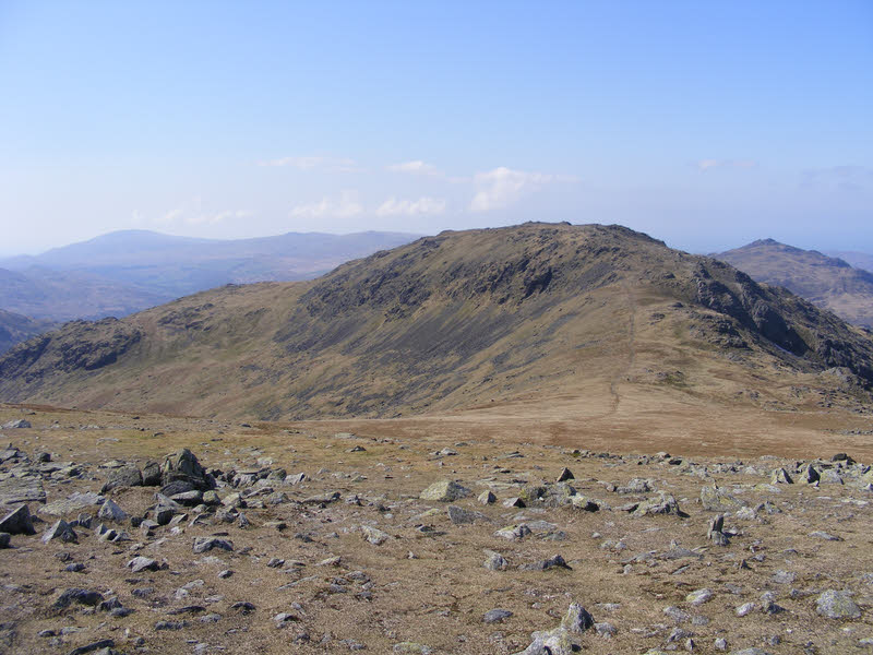 Here we see Grey Friar from the slopes of Great Carrs, the next fell to the east. The clear path between the two fells can be seen as it crosses the col.