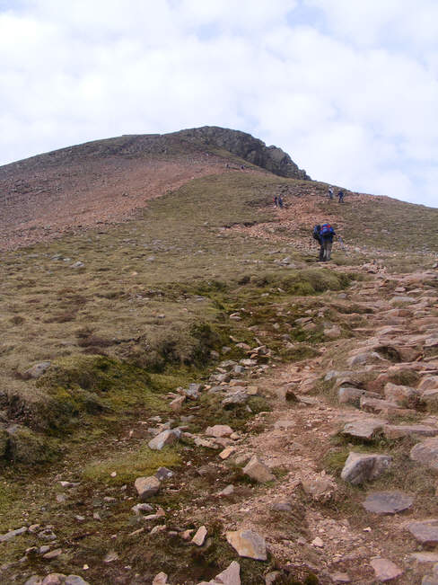The final section of the climb up Red Pike from Buttermere is the hardest, involving a steep scramble up a shifting slope of red scree, finishing with a final climb up an eroding gully.
